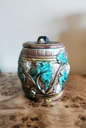 Antique Majolica Pottery Vineleaf Barrel Pot     Completed    $3.64