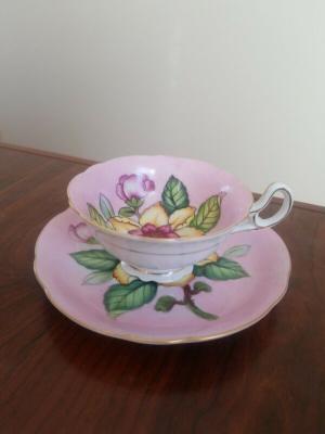 PURPLE PANSIES TEACUP & SAUCER W/ GOLD TRIM     Completed    $3.25