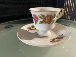 Vintage tea cups and saucers Regency Rose Pattern     Completed    $2.99