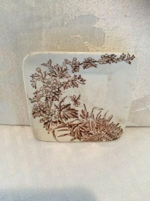 Antique Brown Transfer ware Square Butter Pat     Completed    $2.25