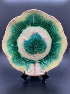 Very old Majolica Plate Green Leaf     COMPLETED    $1.99