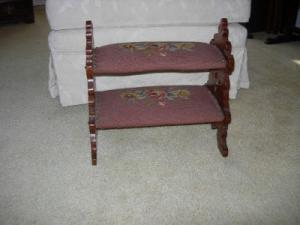 VINTAGE WALNUT FOOTSTOOL W/ NEEDLEPOINT UPHOLSTERY     Completed    $10.99