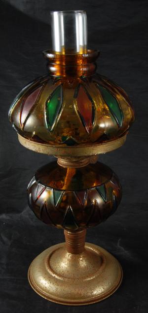 Patterned Amber Glass Oil Lamp - For RESTORATION     Completed    $10.95
