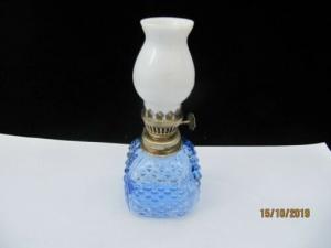 Vintage ~ Miniature Blue Glass & Brass OIL LAMP     Completed    $10.97