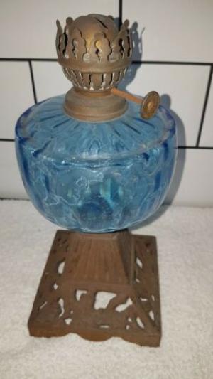 Vintage blue glass & brass Oil Lamp     Completed    $10.52