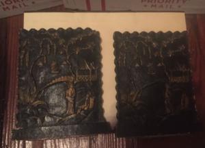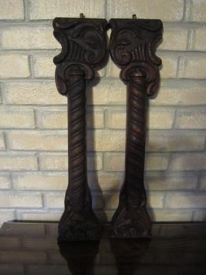 Pair Of Antique Carved Wood Finials MAHOGANY     Completed    $10