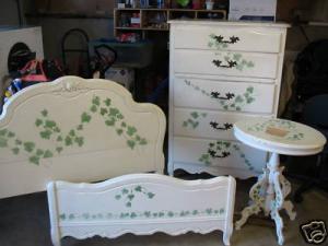 Vintage bedroom set white 1950's twin 5 piece     Completed    $9.99