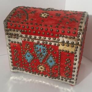 Vintage Antique Red Fabric Studded Chest     Completed    $9