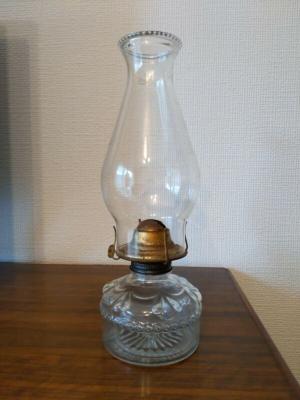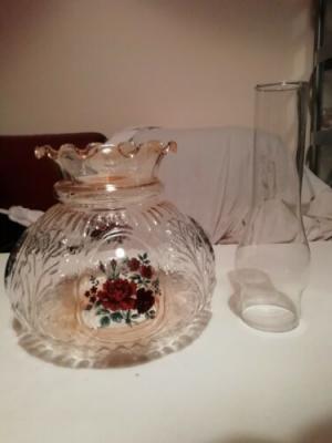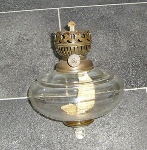 OLD GLASS OIL LAMP FONT WITH BURNER     Completed    $8.23