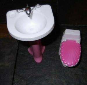 VINTAGE SUSY GOOSE RED RUG TO VANITY SET     Completed    $8