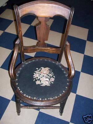 Antique Chair With Needlepoint Seat Very Old!     Completed    $7