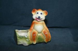 Vintage Porcelain Teddy Bear on Log Planter     Completed    $2