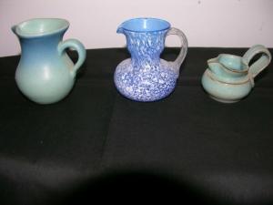 LOT OF 3 SMALL DECORATIVE  PITCHERS, BLUES     Completed    $2
