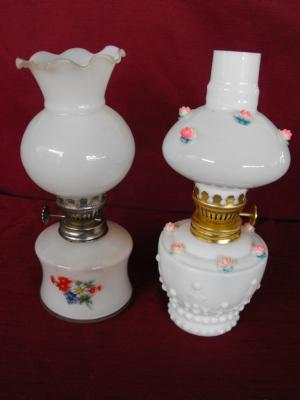 2 Milk Glass Oil Kerosene Lamps Floral Design     Completed    $8.87