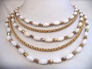 Vintage Jewellery 1940s White Milk Glass Necklace     Completed    $8.93
