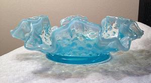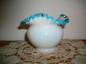 FENTON AQUA CREST WHITE MILK GLASS RUFFLED DISH     Completed    $8.5