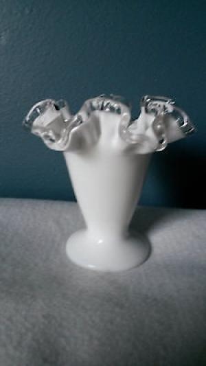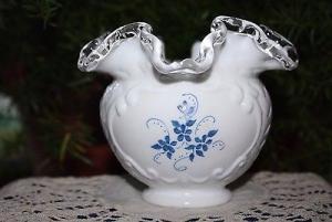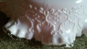 Fenton milkglass bowl lace with clear edging     Completed    $8.5