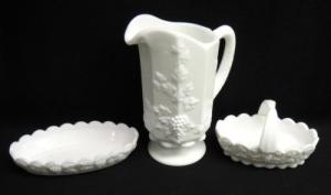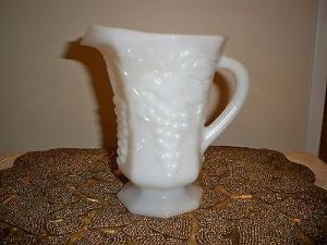 VINTAGE MILK GLASS PITCHER, GRAPE DESIGN     Completed    $8.5