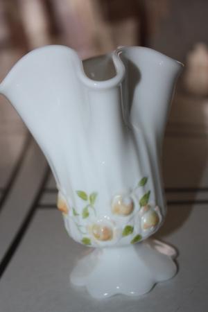 FENTON MILK GLASS HAND PAINTED HANDKERCHIEF VASE     Completed    $8.5