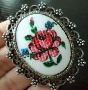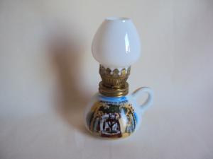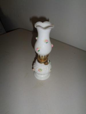 Milk Glass minature oil lamp with pink roses     Completed    $8.5