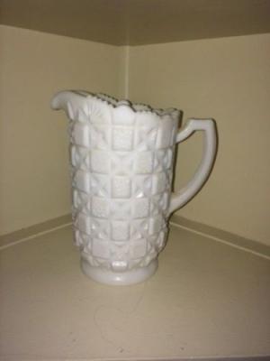 Large Old Quilt Milk Glass Pitcher -8 1/2 inches     Completed    $8.5