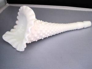 FENTON Hobnail Milk Glass EPERGNE HORN     Completed    $8