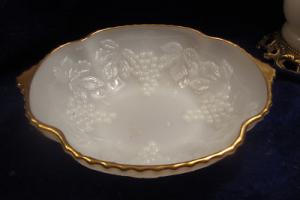 GRANDMAS 12 INCH GOLDEN TRIMMED MILK GLASS BOWL     Completed    $8.01