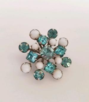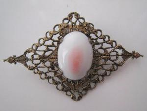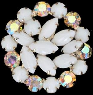 Milk Glass Aurora Borealis Rhinestone Vintage Pin     Completed    $8.01