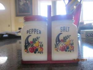 Milk Glass Salt & Pepper in Metal Holder     Completed    $8.01