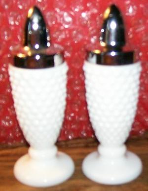 FENTON HOBNAIL MILK GLASS SALT/PEPPER SHAKERS     Completed    $8