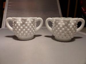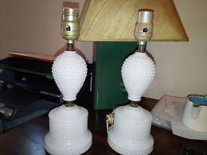 set of 2 hobnail milk glass small lamps     Completed    $8