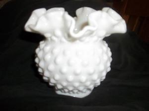 FENTON MILK WHITE HOBNAIL VASE     Completed    $8