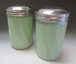 2 Green Milk Glass Salt Pepper Shakers     Completed    $8
