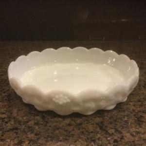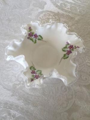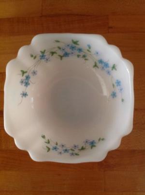 Small White Milk Glass Bowl With Blue Flowers     Completed    $8
