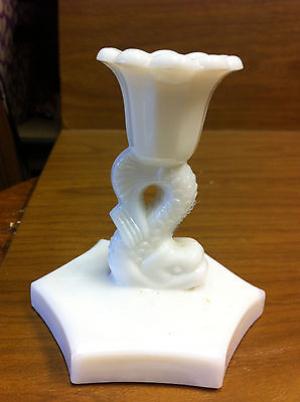 Vintage, Milk glass candle stick, fish shaft     Completed    $8