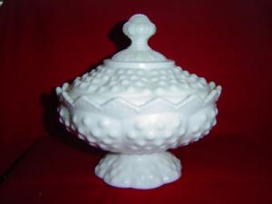 FENTON HOBNAIL FOOTED COVERED CANDY MILK GLASS     Completed    $7.99