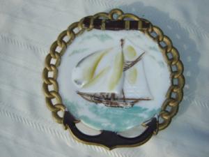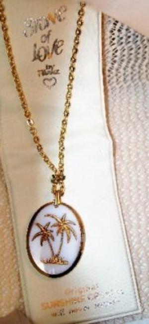 Vtg Franz Milk Glass w/ Gold Necklace Palm Trees     Completed    $7.99