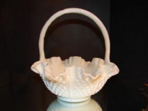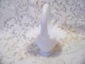 Vintage FENTON White Milk Glass HOBNAIL BASKET     Completed    $7.99