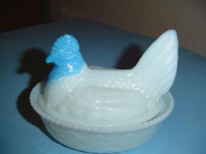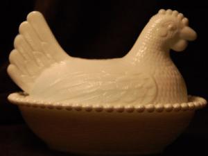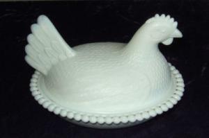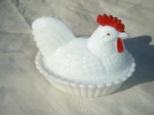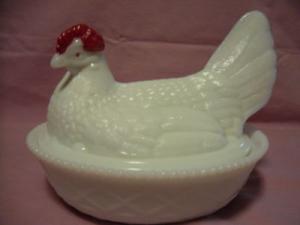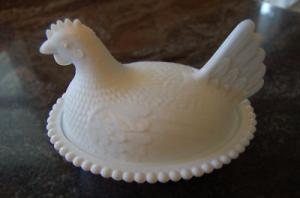 Milk Glass hen/chicken on nest candy dish     Completed    $7.99
