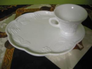 4 Milk Glass Grapes Luncheon Plates & Cups MINT!     Completed    $7.99