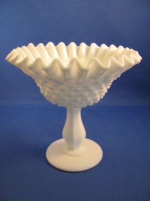 Fenton Hobnail Milk Glass Crimped Edge Compote     Completed    $7.99