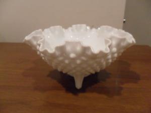 Fenton Hobnail Milk Glass Ruffled Bowl     Completed    $7.99