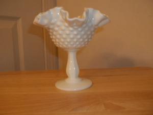 Paneled Grape Milk Glass Compote.     Completed    $7.99