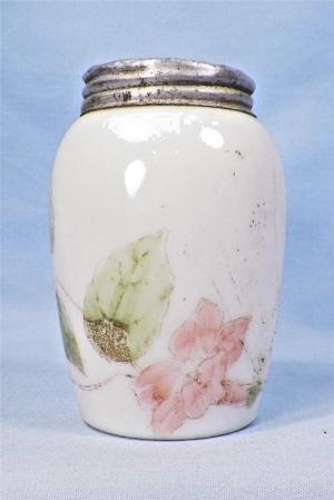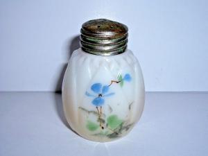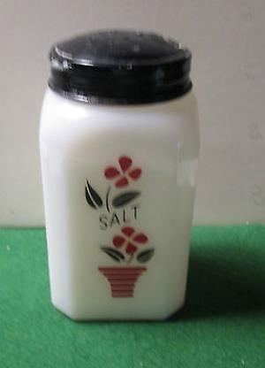 Milk Glass Salt Shaker Flowers Black Top     Completed    $7.99