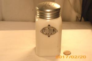 VTG STOVE TOP MILK GLASS FLOUR SHAKER     Completed    $7.99
