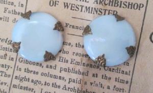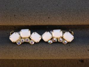 White Milk Glass Rhinestone Clip Earrings Vintage     Completed    $7.99