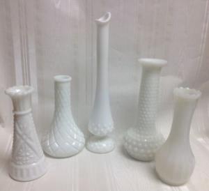 Lot/5-Vintage White Milk Glass Vases 6" To 10"     Completed    $7.99