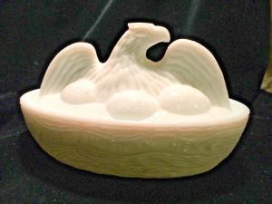 AMERICAN HEN - WHITE MILK GLASS COVERED DISH     Completed    $7.99