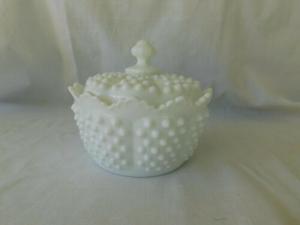 Vintage Fenton milk glass hobnail covered dish     Completed    $7.99