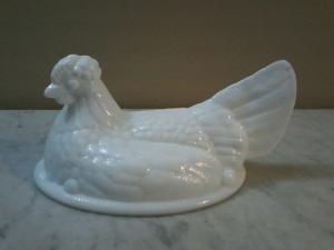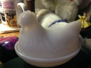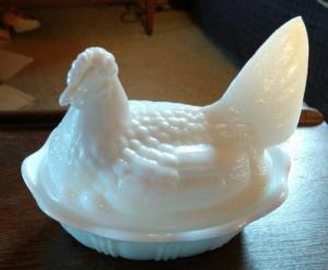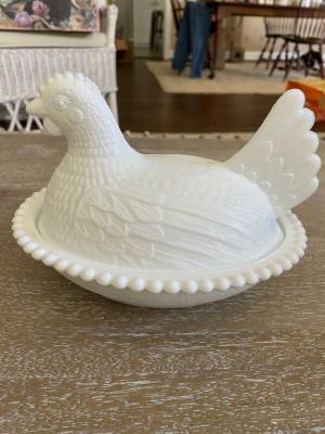 Vintage Milk Glass Chicken On Nest Candy Dish     Completed    $7.99